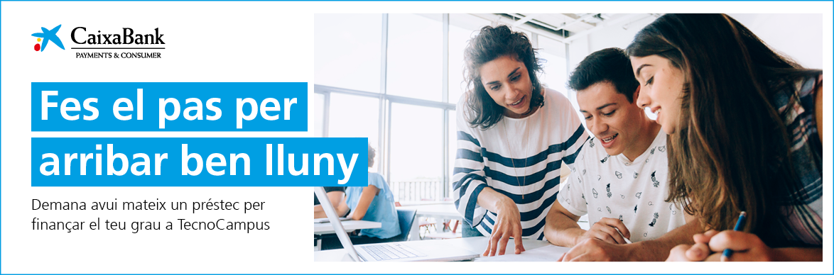 Consulta més informació https://www.caixaenginyers.com/ca/prestamo-estudios?utm_source=Prestecestudis&utm_medium=link&utm_campaign=TECNOCAMPUS o posa’t en contacte amb: