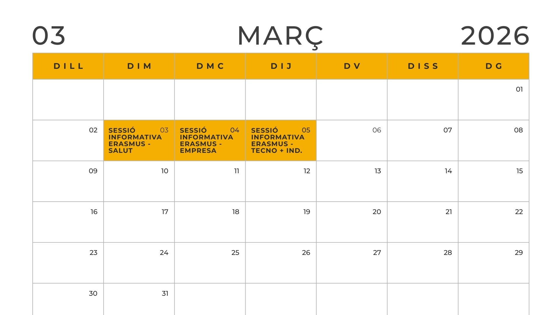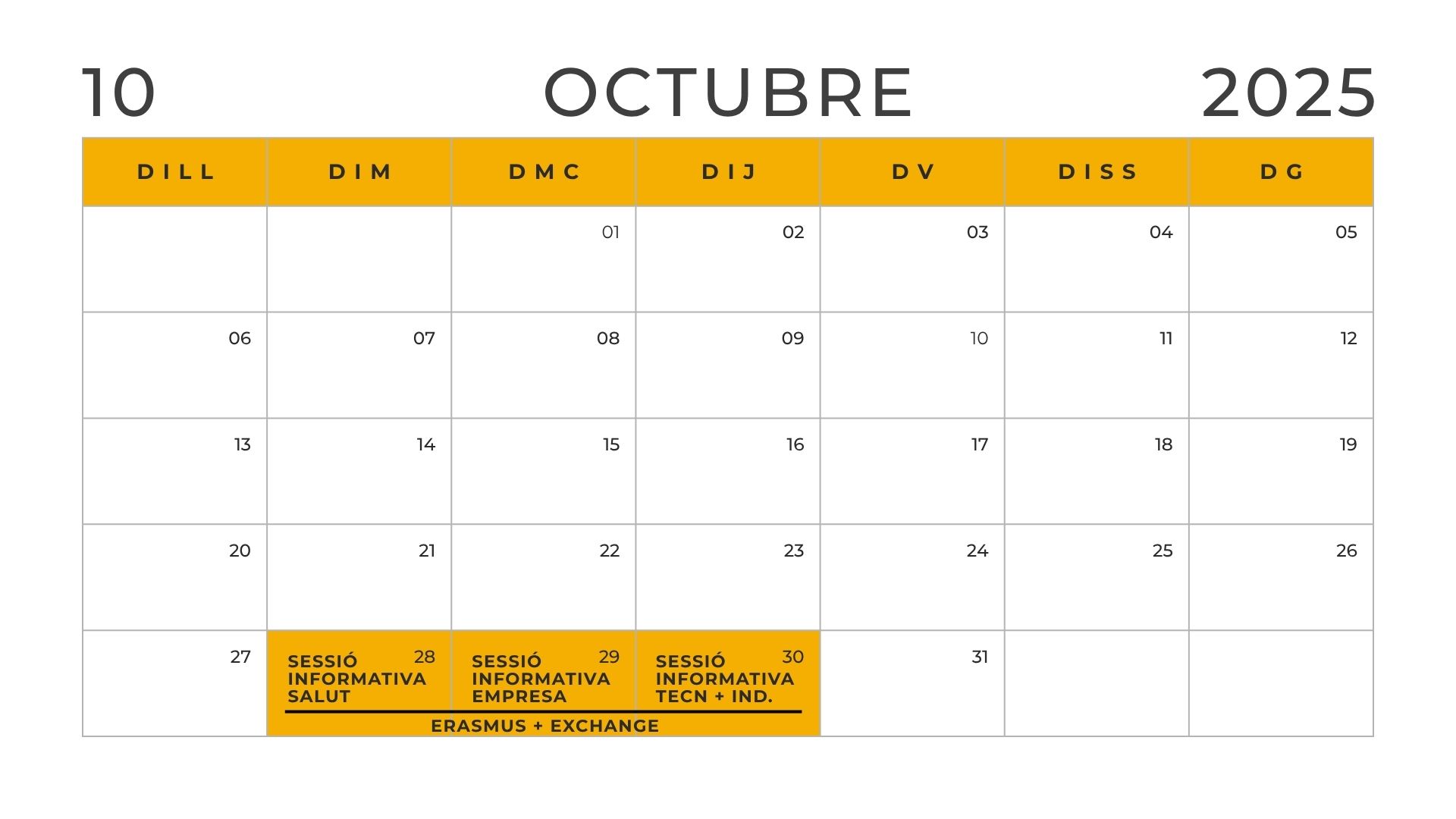 Programa SICUE (mobilitat dins Espanya; només per estudiants de Salut, Tecnologia i Indústries Culturals):