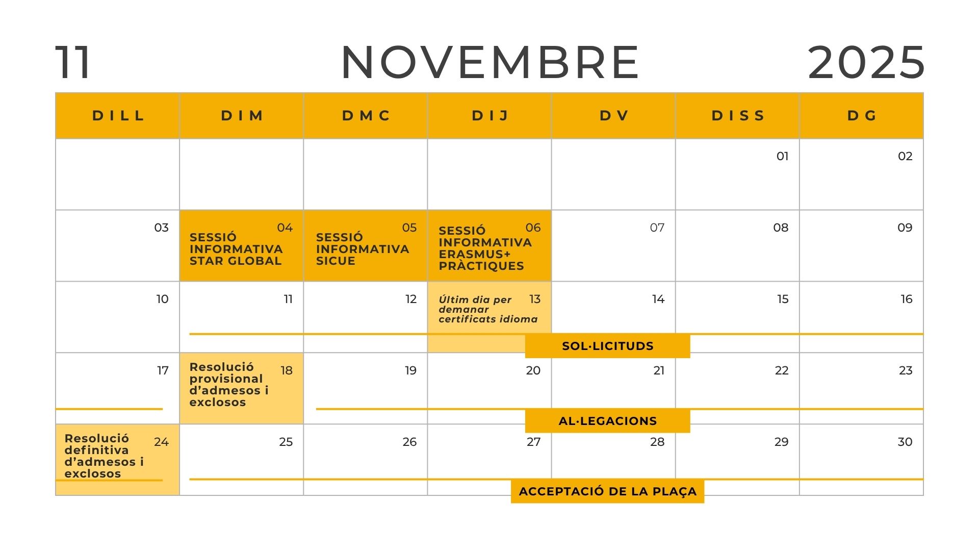 Programa Star Global (mobilitat a Canadà, EEUU i Austràlia; només per estudiants d’Empresa i Tecnologia): una sessió de la mà de "The International Student Office", l'oficina europea que gestiona l'accés a aquestes universitats.