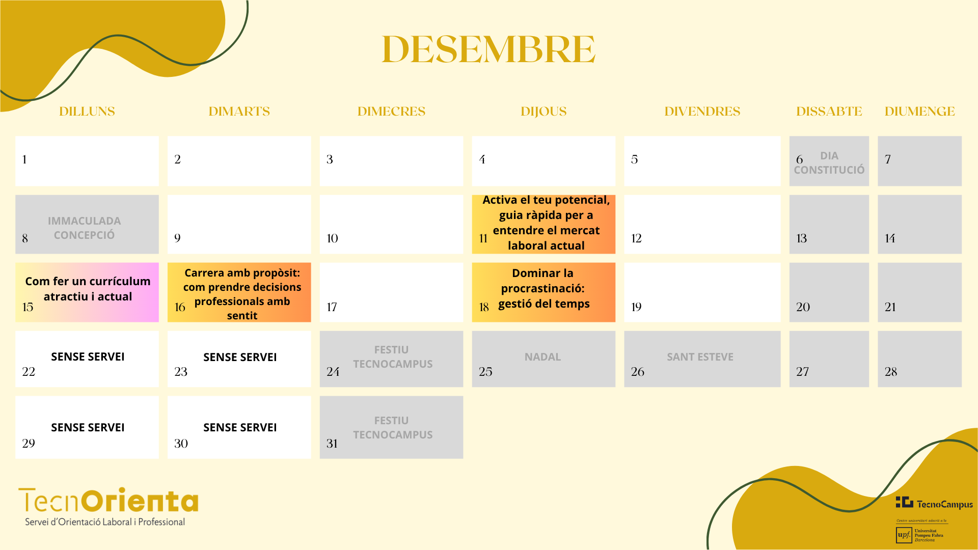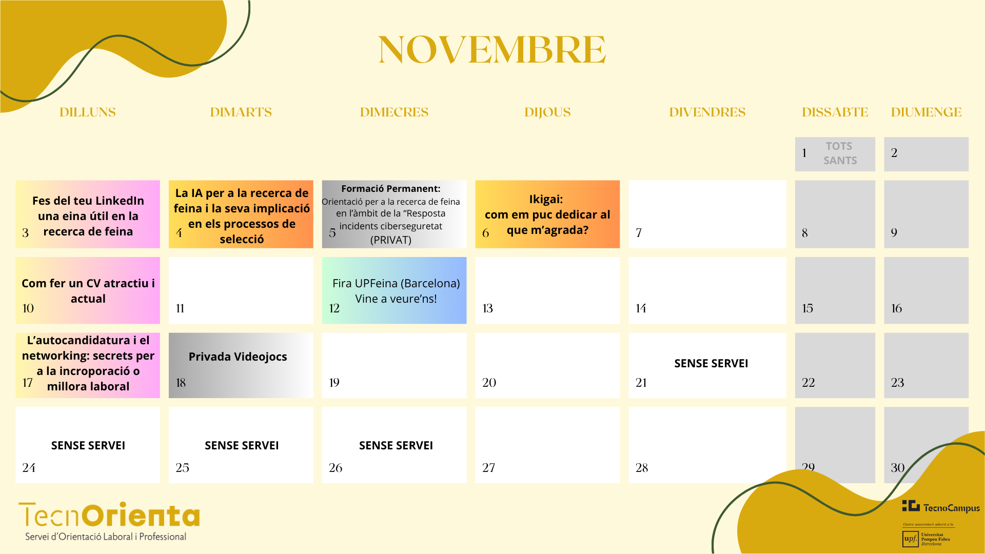 TOTES LES ACTIVITATS QUE ES PRESENTEN A CONTINUACIÓ ESTAN DIRIGIDES A LA COMUNITAT D'ESTUDIANTS DEL TECNOCAMPUS (Alumnes de Grau, Fromació Permanent i Alumni)