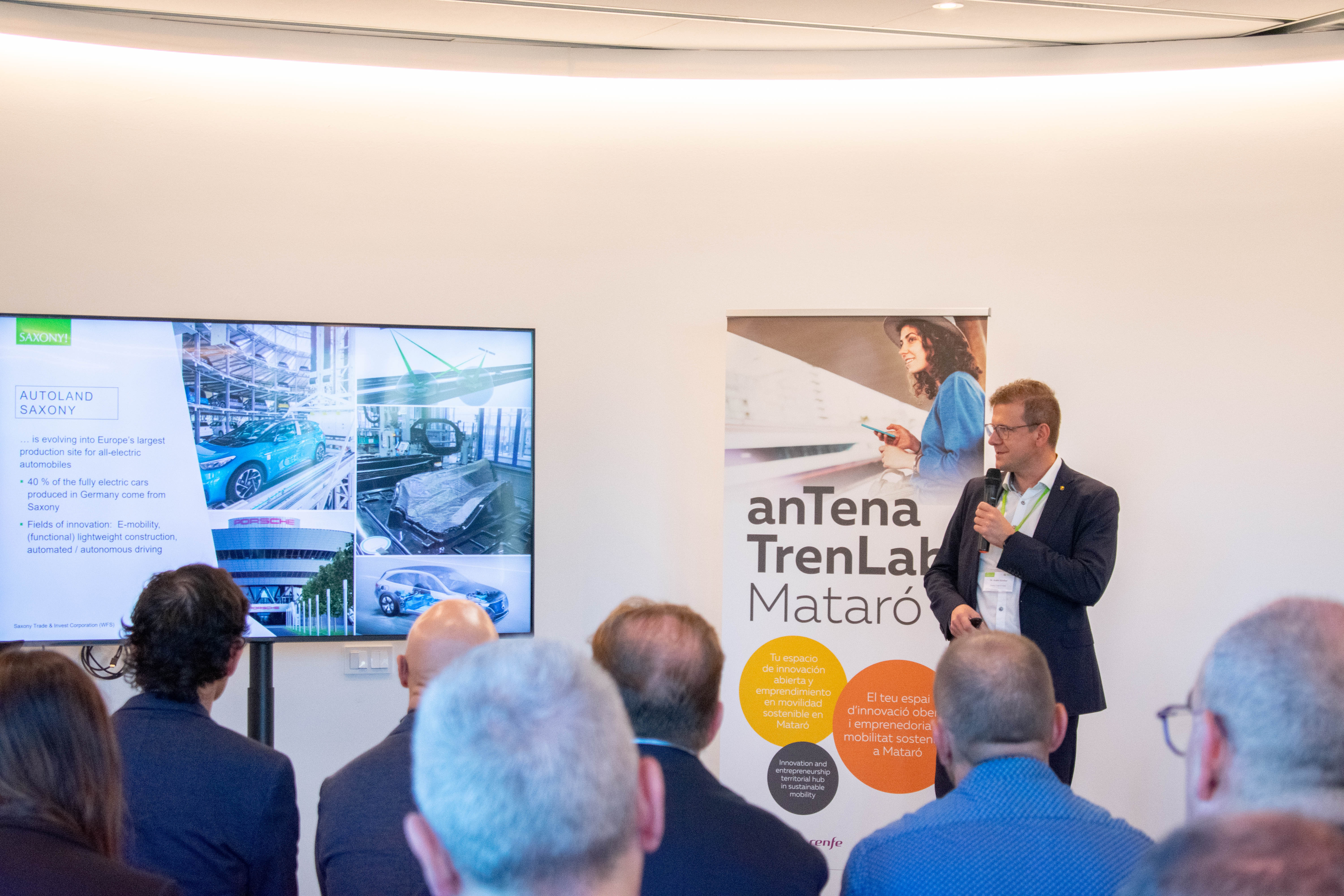 El dimarts 21 d’octubre, l’espai Antena TrenLab Mataró va acollir la Jornada B2B Saxònia–Catalunya, una sessió empresarial centrada en el foment de sinergies entre empreses catalanes i alemanyes del sector ferroviari. L’esdeveniment, organitzat per IN-MOVE by Railgrup, la Cámara de Comercio Alemana para España (AHK Spanien) i ACCIÓ, amb la col·laboració de l’Ajuntament de Mataró i Antena TrenLab, va posar de manifest el fort potencial de la indústria ferroviària i la seva aposta per la innovació, la digitalització i la sostenibilitat.