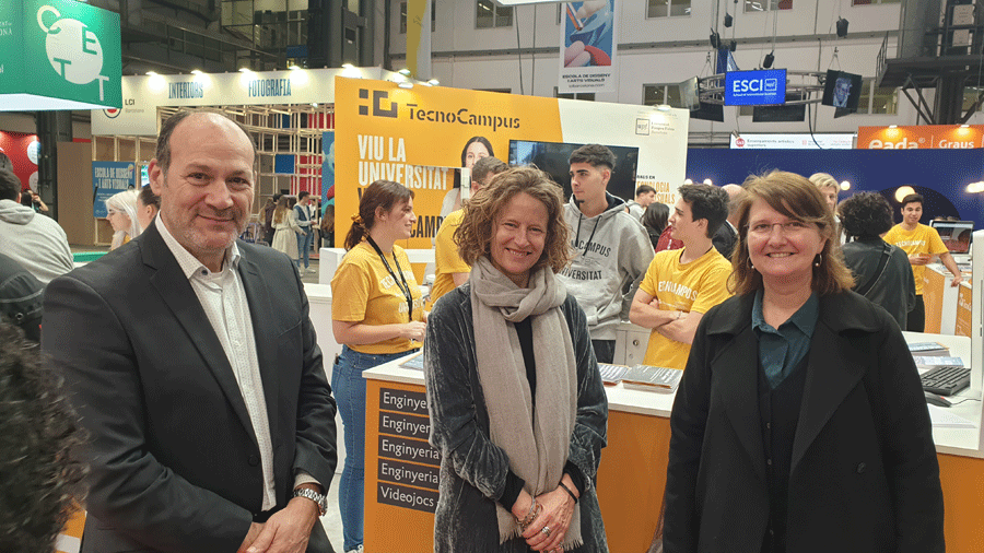 El nou estand s'ha remodelat en la part superior per donar més visibilitat a la marca des de qualsevol lloc del pavelló de Fira de Barcelona on s'ubica el Saló de l'Ensenyament. D'aquesta manera, el visitant pot localitzar fàcilment un estand situat just al costat del de la Universitat Pompeu Fabra, a la qual està adscrit el centre universitari TecnoCampus. Dimecres dia 15, la rectora de la UPF, Laia de Nadal, va visitar l'estand acompanyada del director general , Josep Lluís Checa, i la directora acadèmica, Elisa Sayrol.